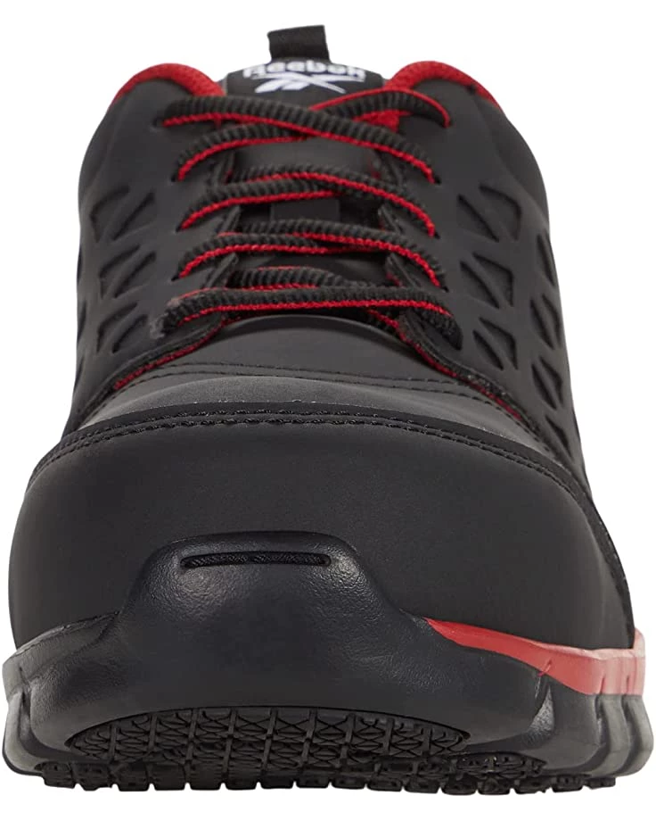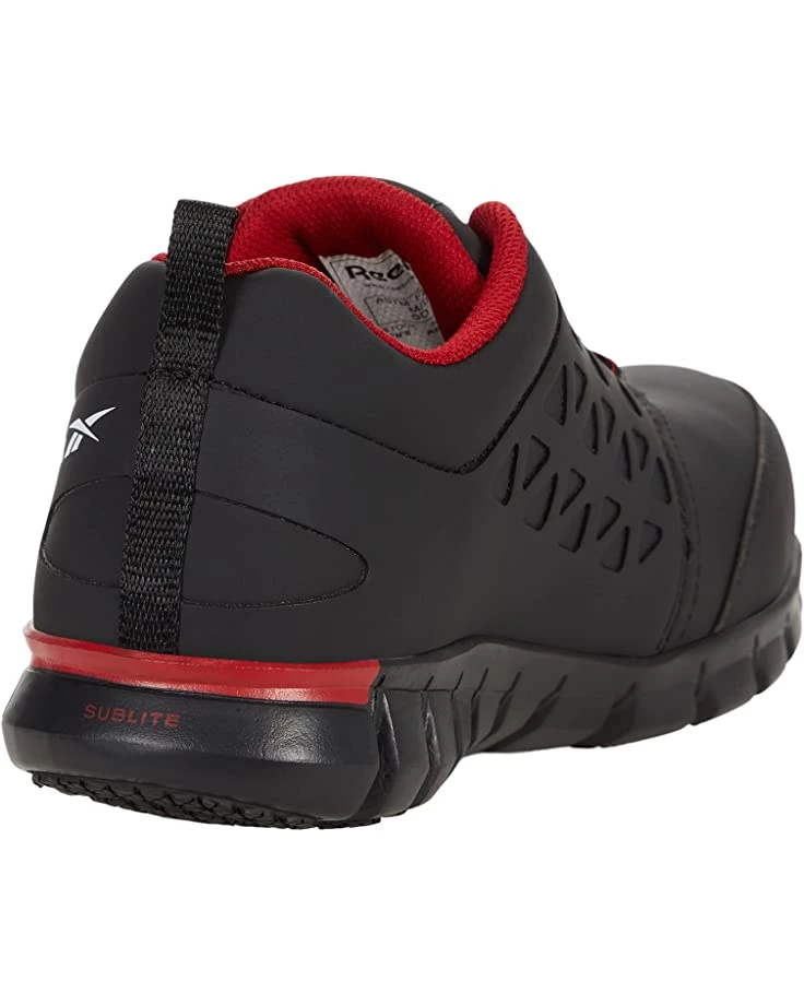 - Experience all-day comfort with the lightweight design of the Reebok® Work Sublite Cushion Work Comp Toe SD safety sneaker.